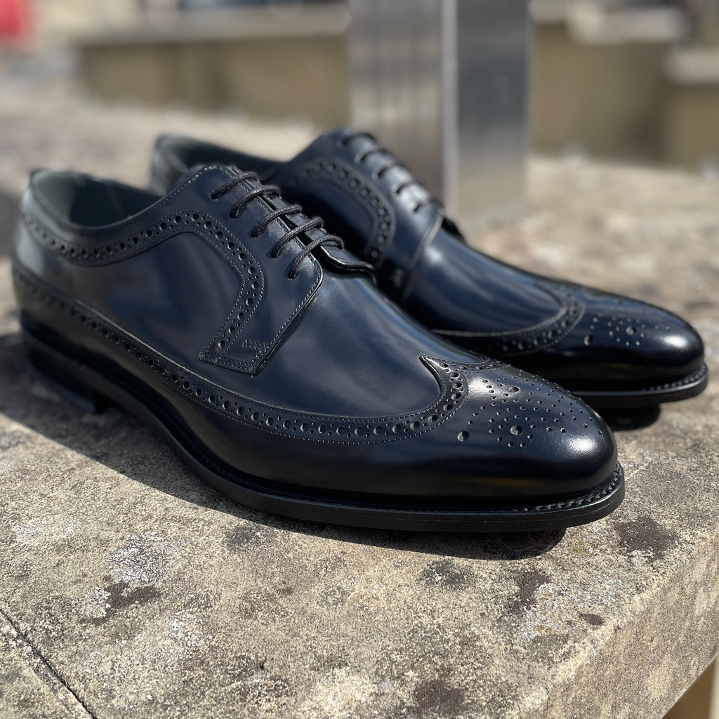 Woodbridge is a classic long-wing Brogue Derby crafted from the finest European polished leathers. Intricate details matched with a sophisticated style.